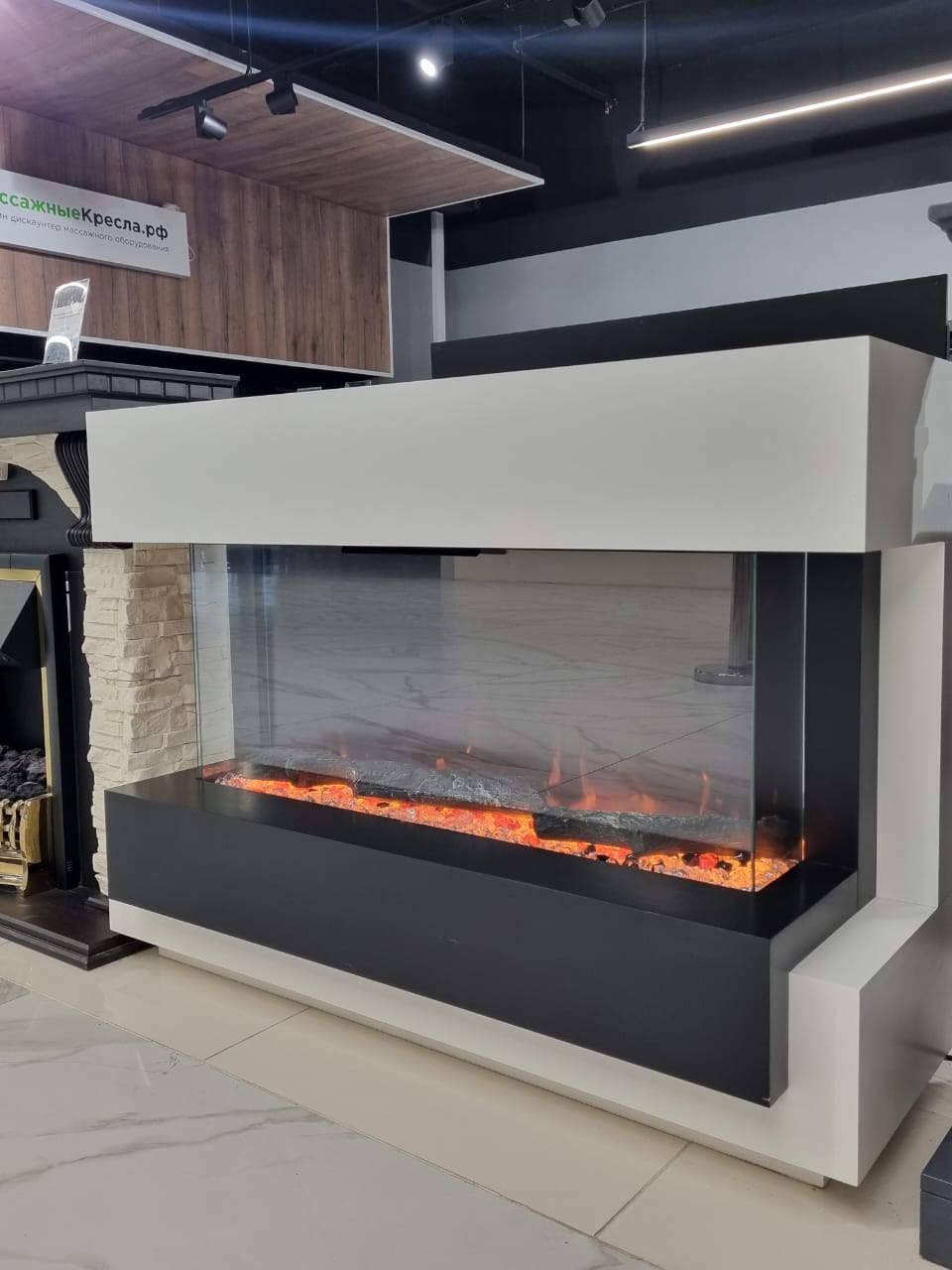 Каминокомплект Cube 36 - Белый с черным с очагом Astra 36 RF (выставочный образец)