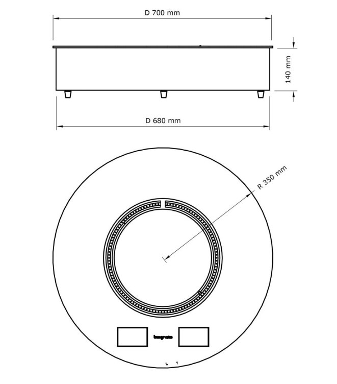 - Габаритные размеры ШxГxВ, (мм): 700х700х140