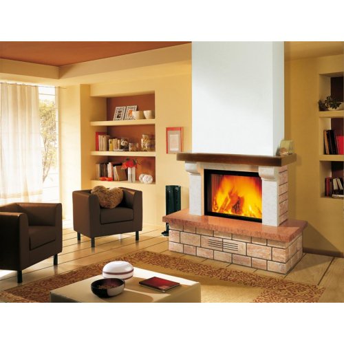 Камин Livigno оснащен закрытой стеклянной топкой из жаропрочного стекла. Такая форма топки отлично влияет на обогревательные способности камина. Livigno – отличный источник тепла и живого огня. Высокая теплоотдача достигаема благодаря КПД не ниже 70%. К тому же, закрытый вариант топки способен потреблять небольшое количество дровяного топлива, тем самым обеспечивая самый лучший климатический контроль в доме совсем незатратно.