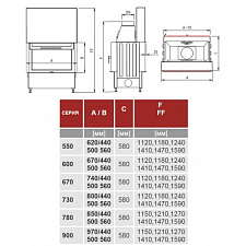 Корпус каминной топки выполнен из жаропрочной стали, колосники и патрубки из чугуна.