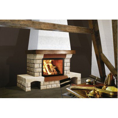 Sunhill Florida - величественный камин для большого каминного зала. Данный камин изготавливается в популярном классическом стиле. Модель устанавливается традиционным образом - в упор к стене помещения, при этом топка должна иметь фронтальное ориентирование. Камин си мметричен. С двух сторон от топки имеются встроенные в облицовку полости для хранения дров. Каминная Облицовка Sunhill Florida сделана на 90% из шлифованного и грубоколотого ракушечника Du Gard (Франция), а пространство вокруг топки оформлено красным кирпичом (Франция). Над топкой располагается массивная балка из дерева. Чертеж Sunhill Florida