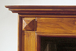 Угловая модель, плита и обрамление колошника которой выполнены из полированного мрамора трани, цоколь из колотого мрамора вичентино, стальной ящик для дров обшит деревом. Балка из затемненного массива дуба.