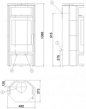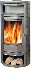 Отопительная печь с облицовкой из цветной керамики с цветочным барельефом. Печь работает на дровах. Принудительная вентиляция. Стальная структура с чугунным очагом.