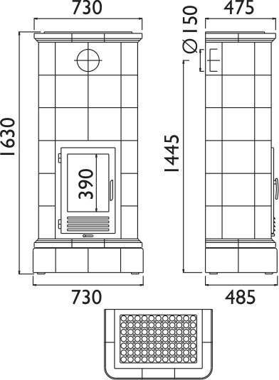 - Диаметр дымохода, (мм) 150