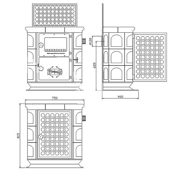 Компания АВХ, продукцию которой мы представляем, выпускает каминные топки, камины, облицованные натуральным камнем или кафелем, а также печи камины с варочной поверхностью. Модель Latvia относится к печам средней мощности, способным отапливать до 130 куб. метров жилой зона. В качестве топлива можно использовать сухие дрова или древесные брикеты. При номинальной нагрузке в 6 кВт, расход топлива составит 1.8 кГ в час. Присоединение дымохода - заднее. Обратите внимание, что печь предназначена для дымоходной трубы с диаметром в 120 мм (стандарт - 150 мм). Latvia - хороший вариант для загородной дачи, так как позволит не только обогреть дом, но и приготовить горячий обед. Такой мини камин можно поставить даже в небольшом помещении, так как он имеет небольшой вес и скромные габаритные размеры.