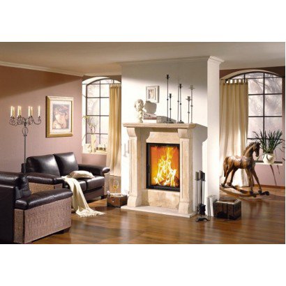 Портал из натурального камня (выбор камня из каталога). В комплект входят декоративные отделочные рамки, необходимые для оптимального монтажа топки.