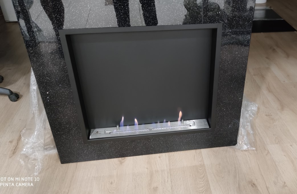 Биокамин Firezo New York   изготовлен из металла толщиной 2 мм  и портала из искусственного мрамора   с черной  переливающийся крошкой.